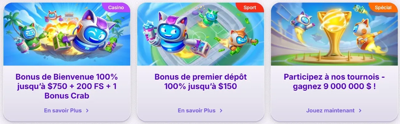 | Bonus de bienvenue | 3 bonus de bienvenue :